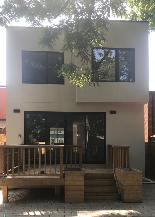 Vinyl 4-1/4”profile windows painted black interior and exterior.