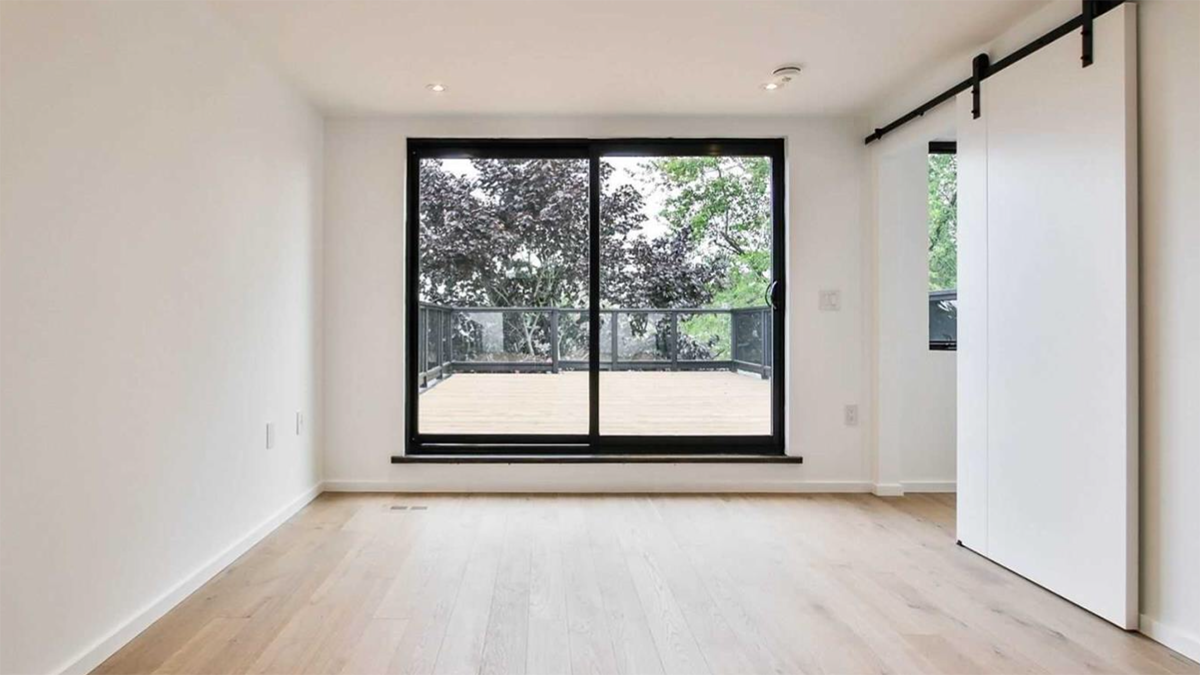 Single door system with a 36”x 95”smooth fiberglass door slab with 7”x 80” sandblasted doorlite, multi-point locking system with satin nickel pull bar handle, painted black interior and exterior, adjustable black low-profile sill.